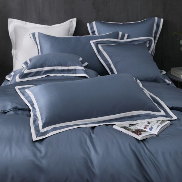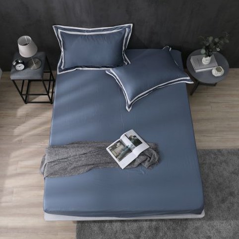高級質感壓框80支天絲床組-歐式藍